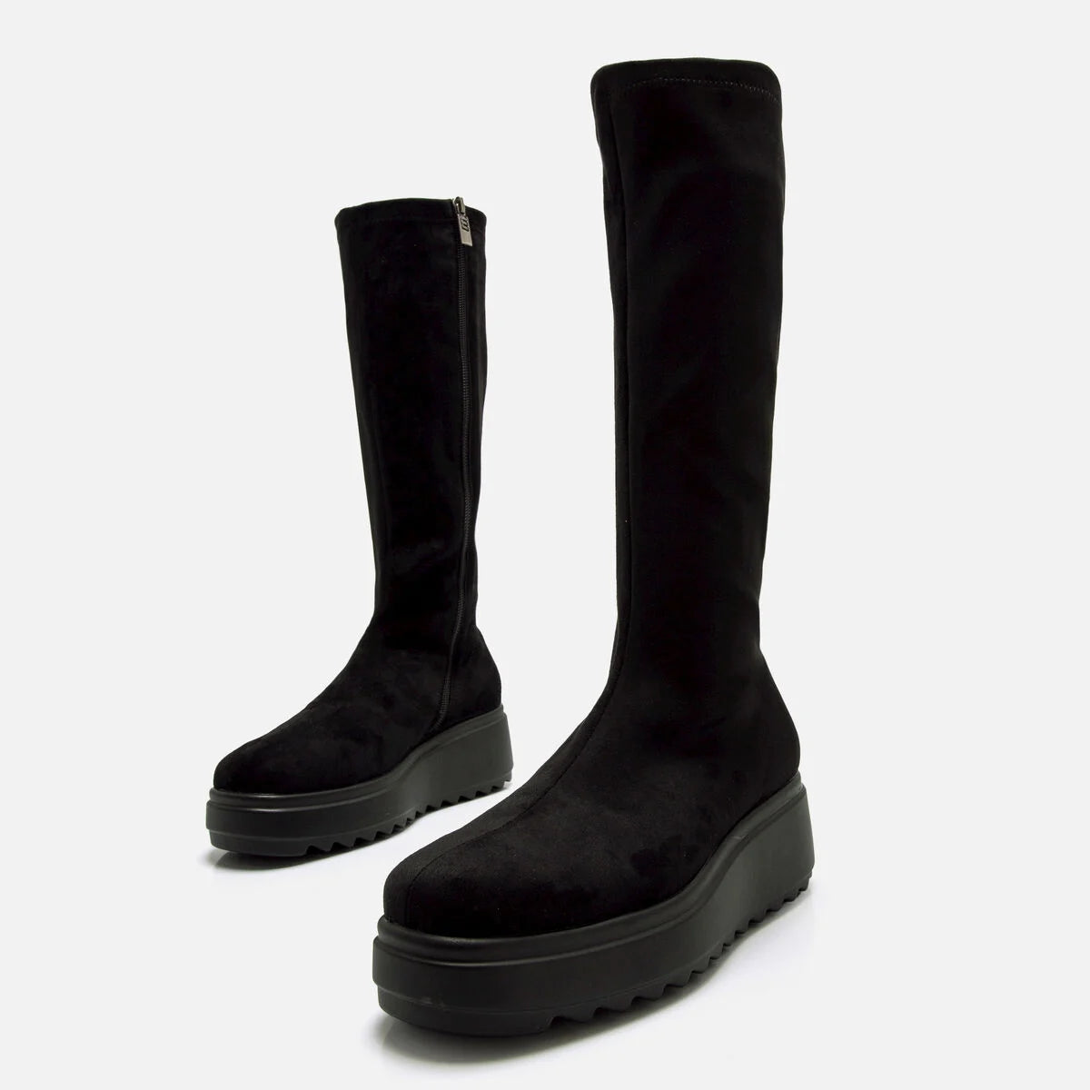 Su diseño stretch ajustado a la pierna y sin costuras visibles refuerza su estilo limpio y contemporáneo. Incorpora plataforma dentada para mayor comodidad y altura, además de una cremallera interior y tirador trasero que facilitan su uso. Una opción ideal para looks urbanos con un toque moderno. Fabricado con un 60% de algodón reciclado post consumo y un 40% de algodón convencional.