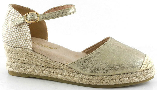 Sandalias de esparto de la marca Amarpies , color platino. Modelo ACX26481 . Piso ligero. Se caracterizan por su ergonomía, ligereza, flexibilidad, y por adaptarse en todo momento a la forma natural del pie proporcionando descanso y libertad de movimiento. Se fabrican con horma amplia que ofrece un calce ancho que no aprisiona.