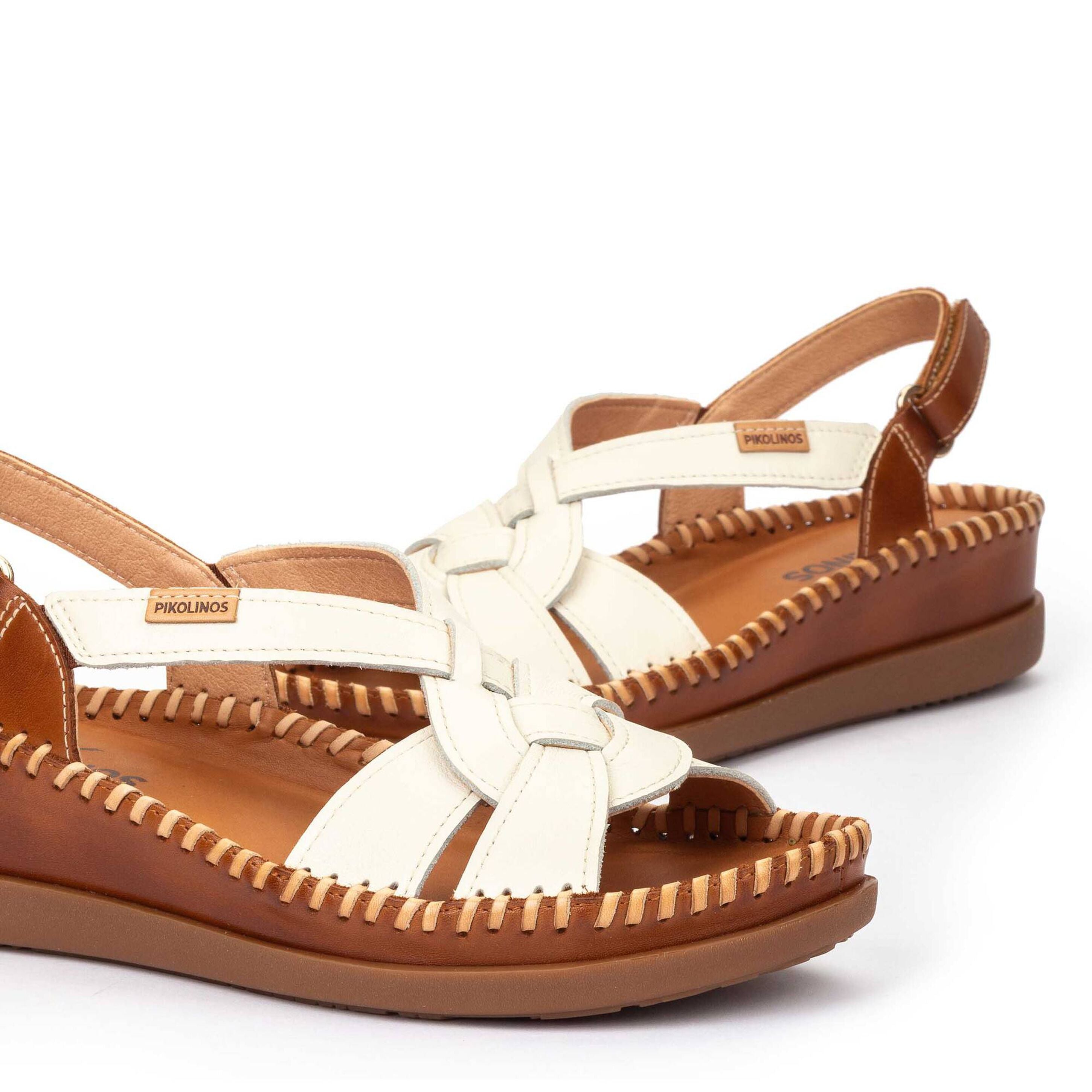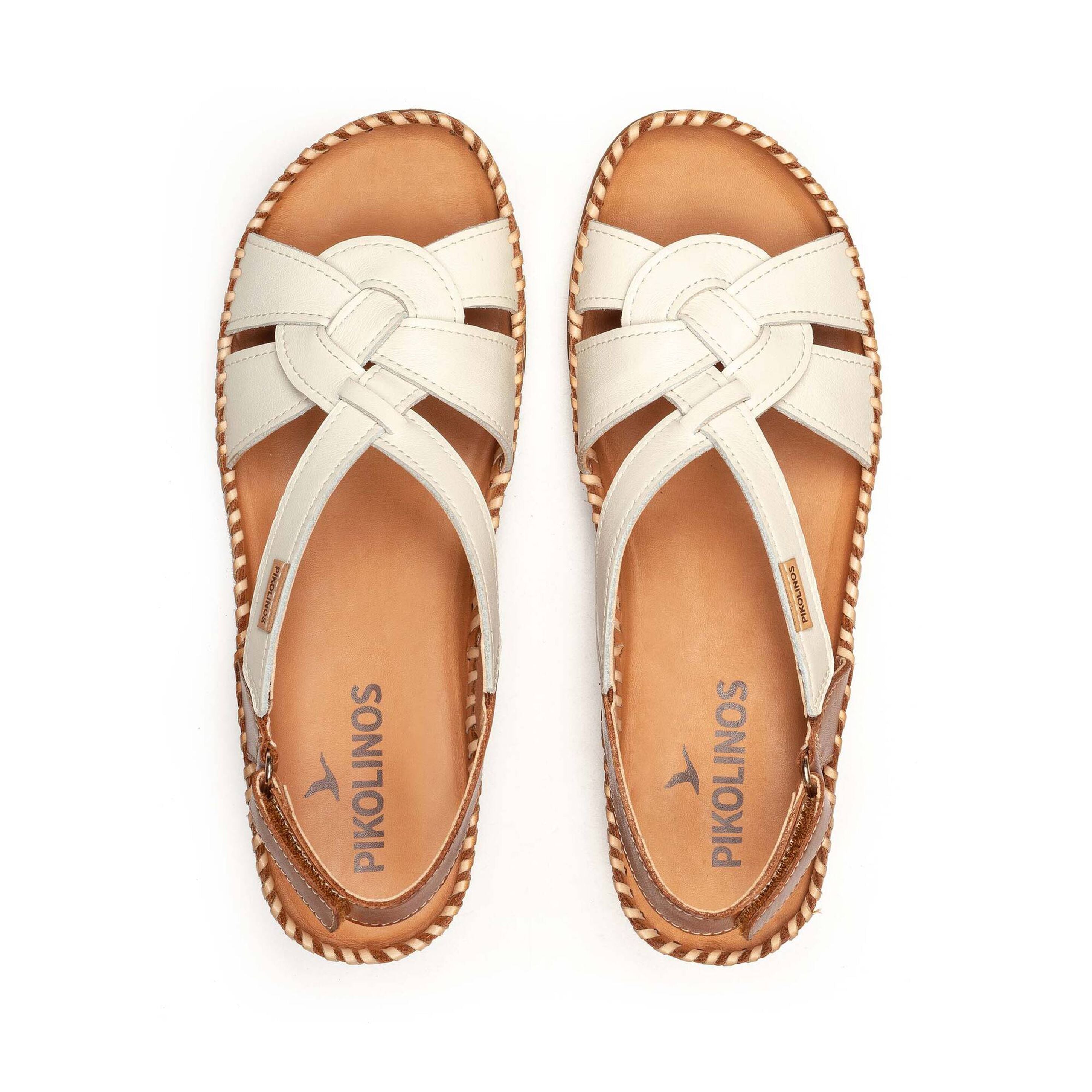 Sandalias de la marca PIKOLINOS, modelo CADAQUES W8K-1839C2. Exterior en PIEL color blanco. Entreplanta acolchada con espuma gel.