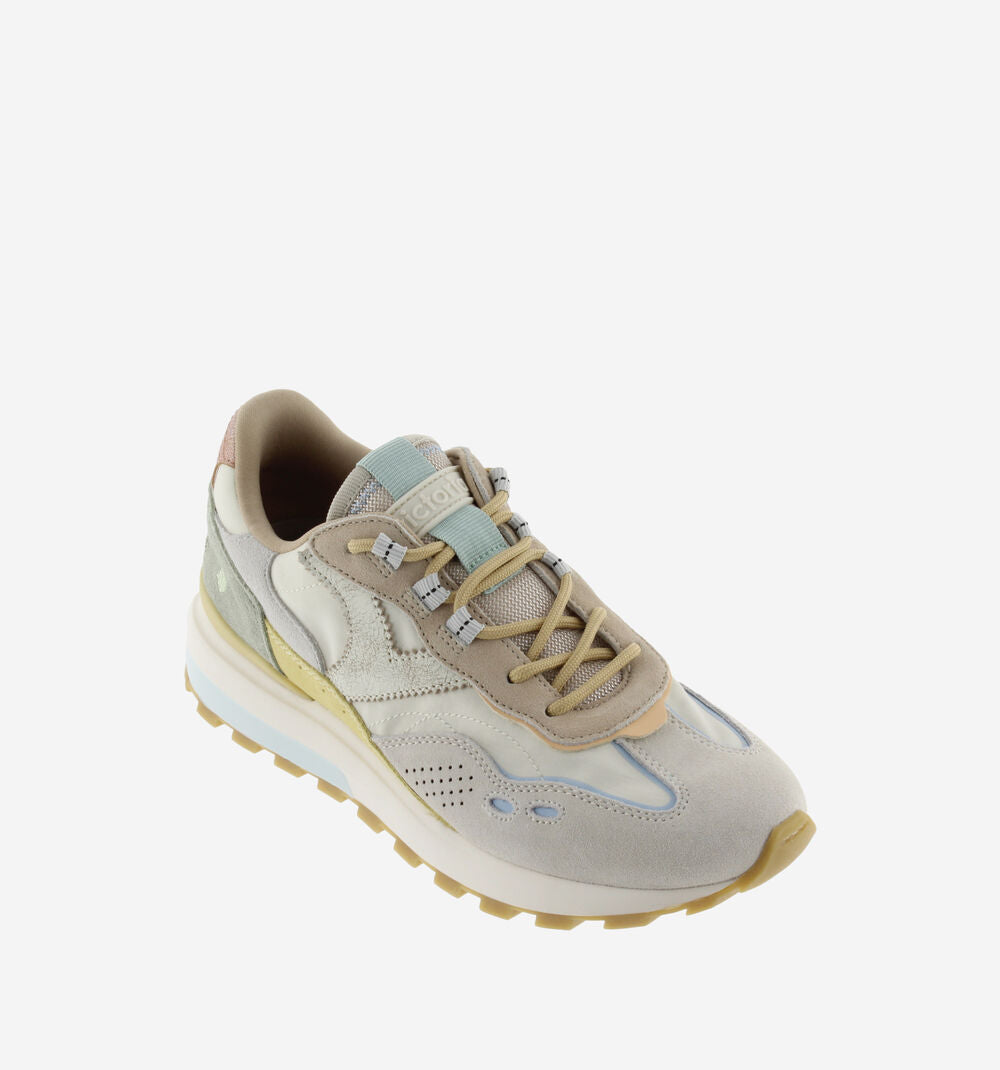 Están confeccionadas en nylon con piezas multicolor superpuestas de serraje y sintéticas. Parche de goma con el logotipo de la marca en la lengüeta. Cierre mediante cordones al tono de tipo redondo. Cómoda suela de phylon con patín de TPR en relieve al tono y estabilizador en el talón.