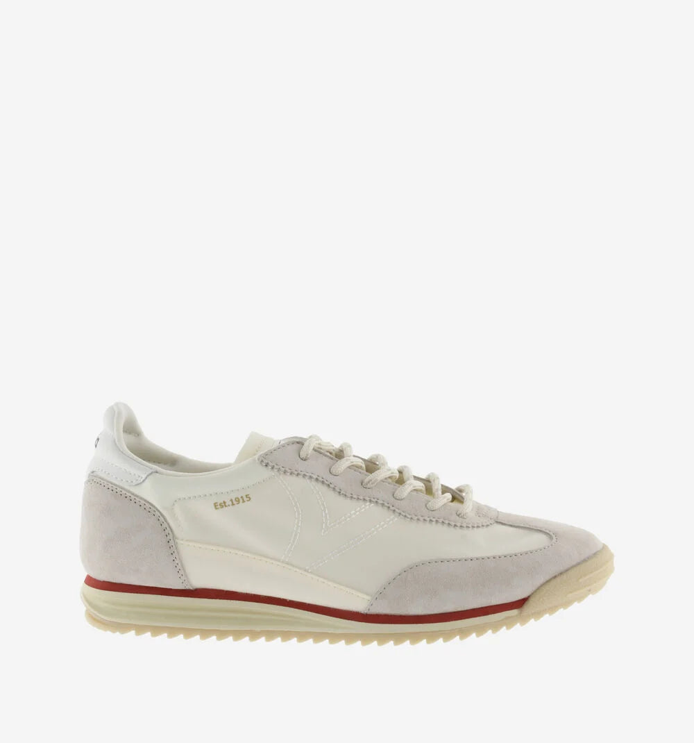 Sneakers unisex fabricadas en nylon con piezas de serraje superpuestas al tono. V de victoria lateral bordada en blanco y pieza trasera en efecto piel blanca con el logotipo de la marca en contraste. Cierre mediante cordones blancos con estampado al tono. Suela bicolor de goma con patín dentado de EVA en crudo.